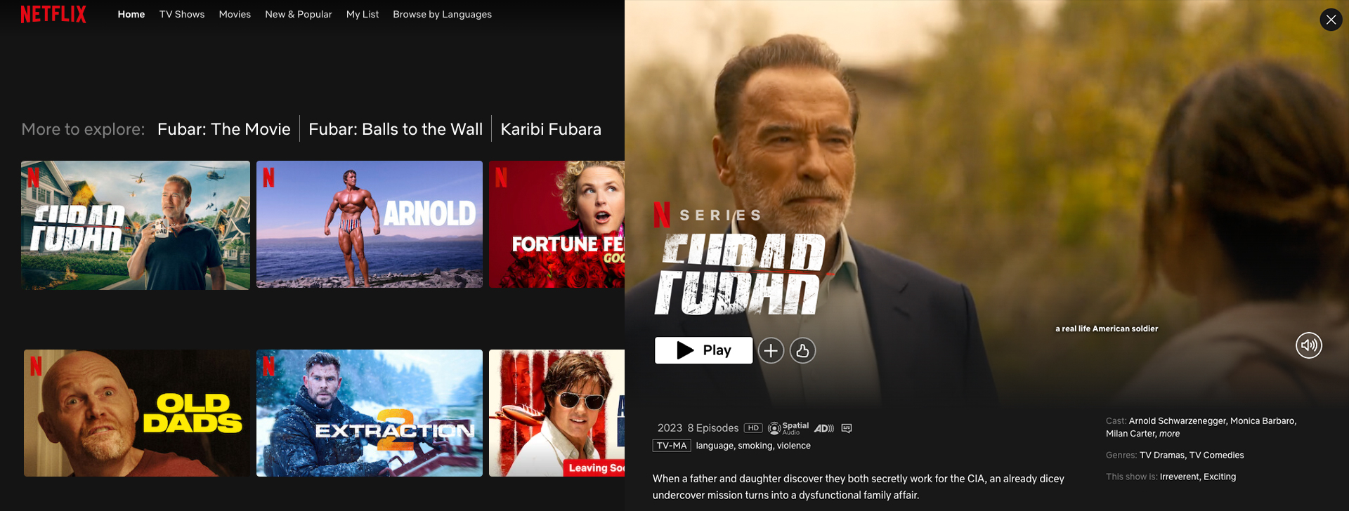 Direction for logo design, color schemes, graphics, and more for the new Netflix show 'FUBAR' featuring Arnold Schwarzenegger.